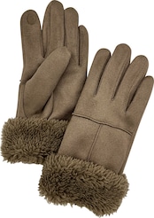 上品なフェイクスエード素材×ふわふわのファーで、高級感たっぷりなムートン風手袋。