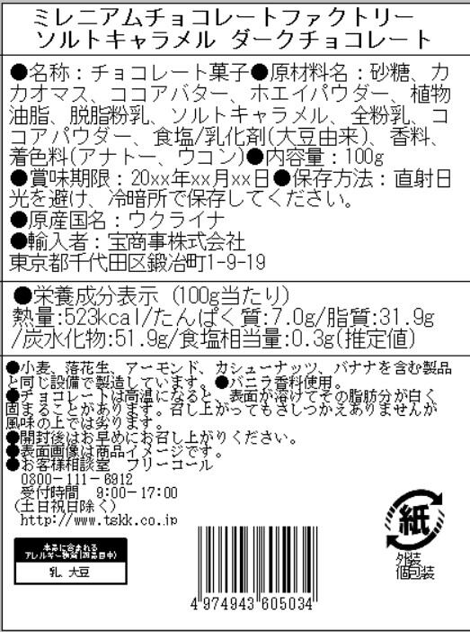 濃厚でリッチなダークチョコレートの味わいと甘く塩気のあるキャラメルフィリングが絶妙なバランスで調和しています。