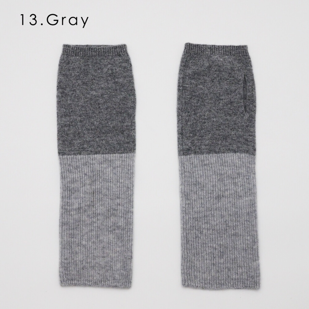 リブニットとニット切替でバイカラーが特徴的なアームウォーマーです。