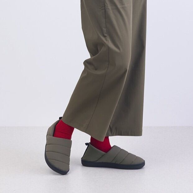 室内用でしたら、かかと部分を踏んでバブーシュのようにも着用していただけます。