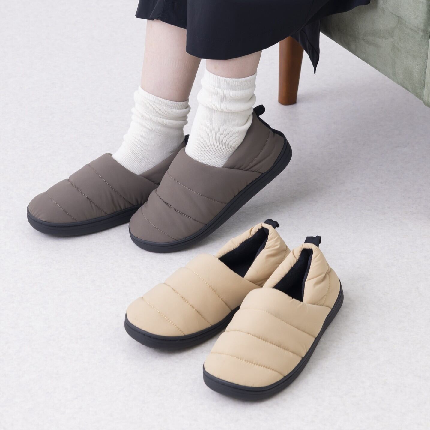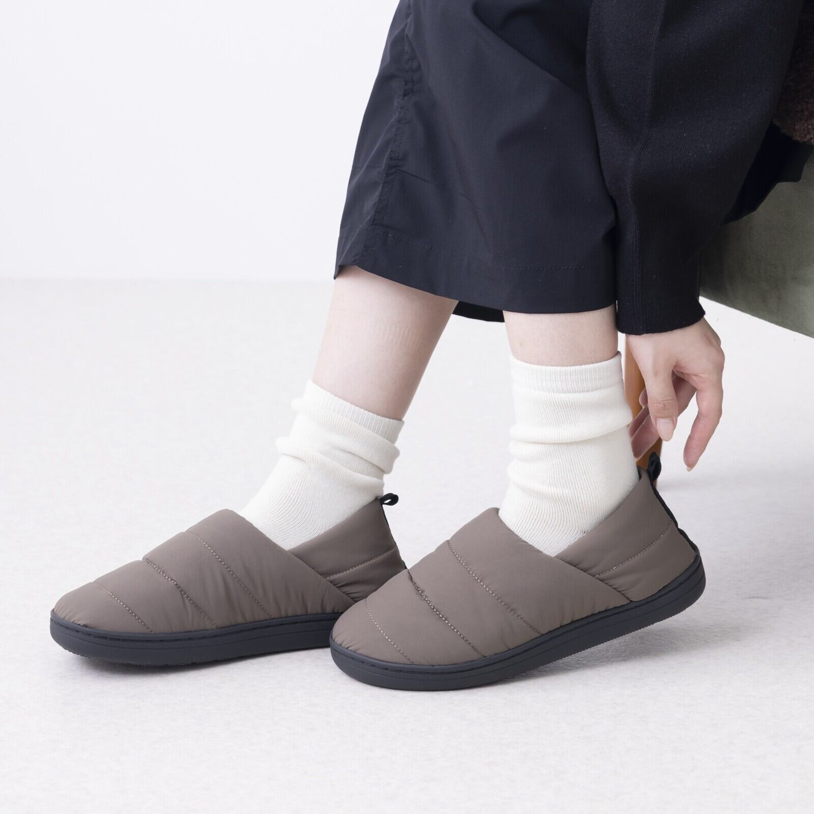 密度の高い中綿素材でしっかり足元を暖めてくれるモックシューズ。
