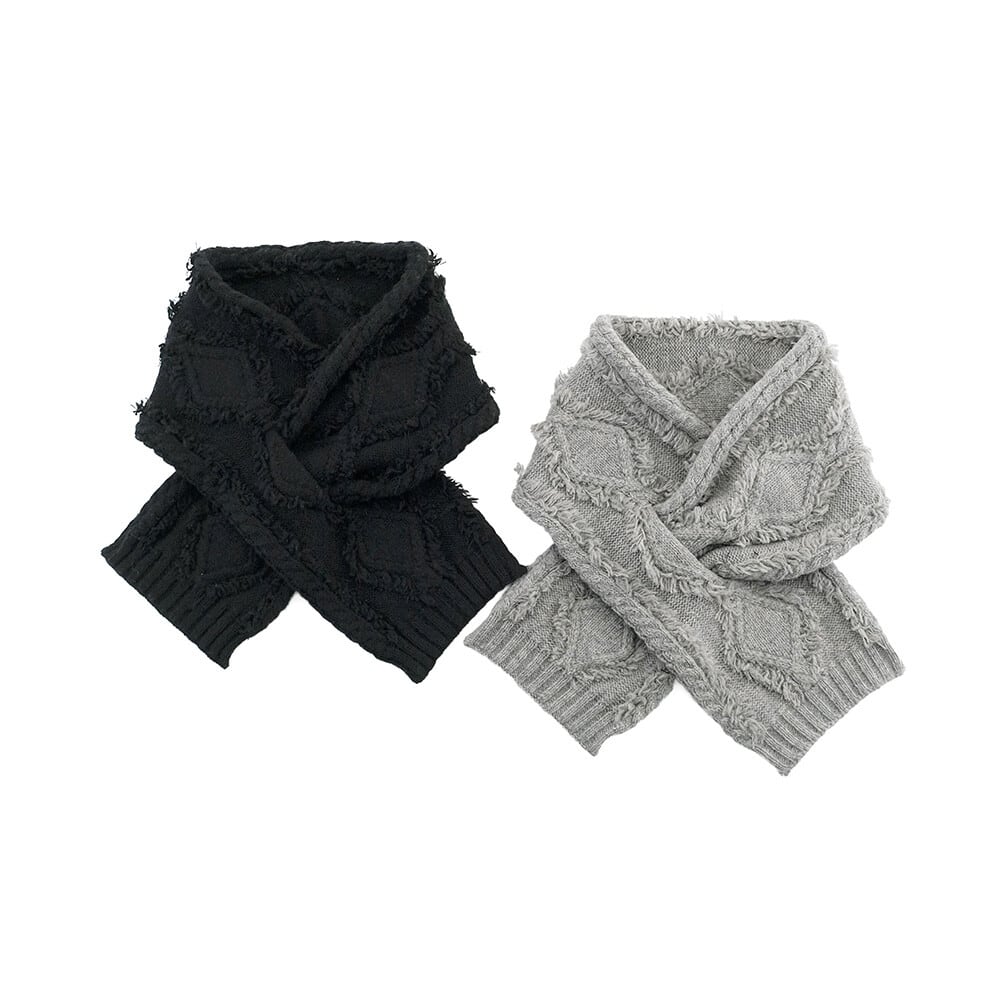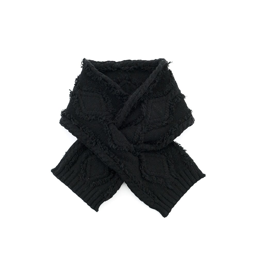 アラン模様とカットジャガードが織りなす立体感が魅力のミニマフラー。