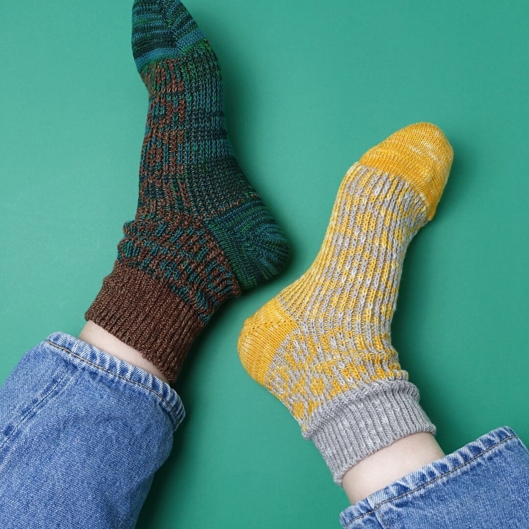 ・商品の特徴やわらかなオーガニックコットンとぷっくりとした綿スラブ糸をたっぷり使い、希少なローゲージのジャガード機で肉厚に編み上げました。凹凸のある編み地にすることで、適度なフィット感とクッション性を高め、かかとを立体的に編むことで足のホールド感を出すなど細やかな工夫が詰まっています。しっかりとした厚みがあって、ちょっとしたアウトドアにも最適。お出掛けが楽しくなるような心弾むドット柄は空や森を感じさせるカラーリングです。