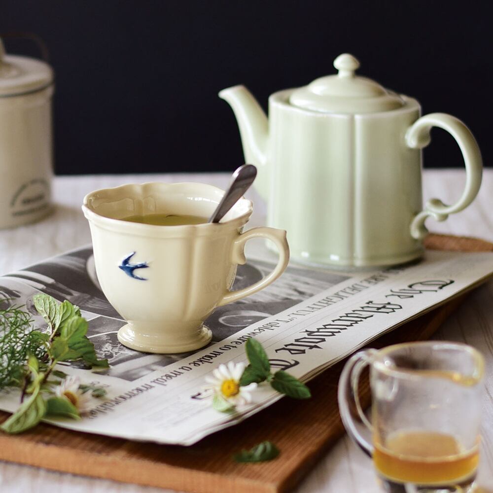 マグの口元はプレートやプチボウルのデザインとあわせ、華やかな仕上がりです。