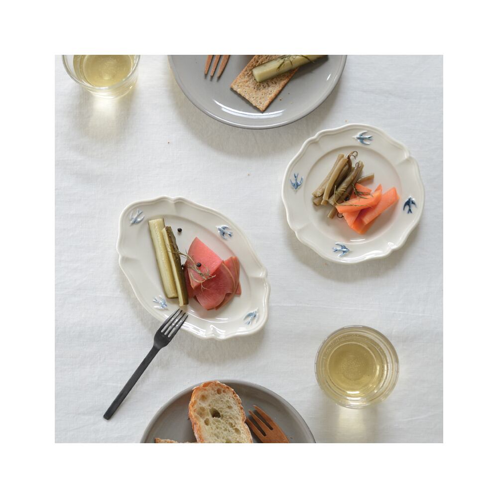 オーバル型のお皿は様々な形の食器と相性がよく、食卓の中でもなじみやすいです。