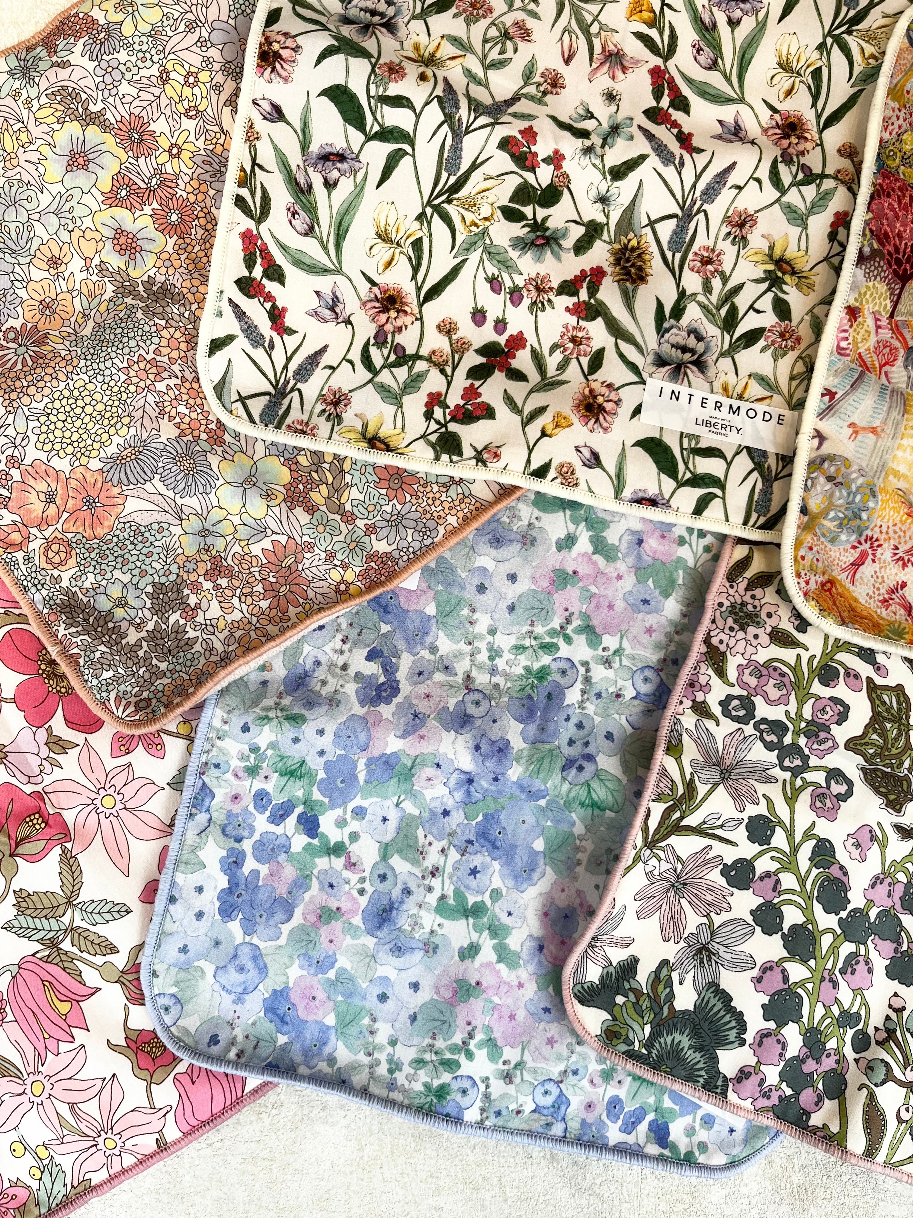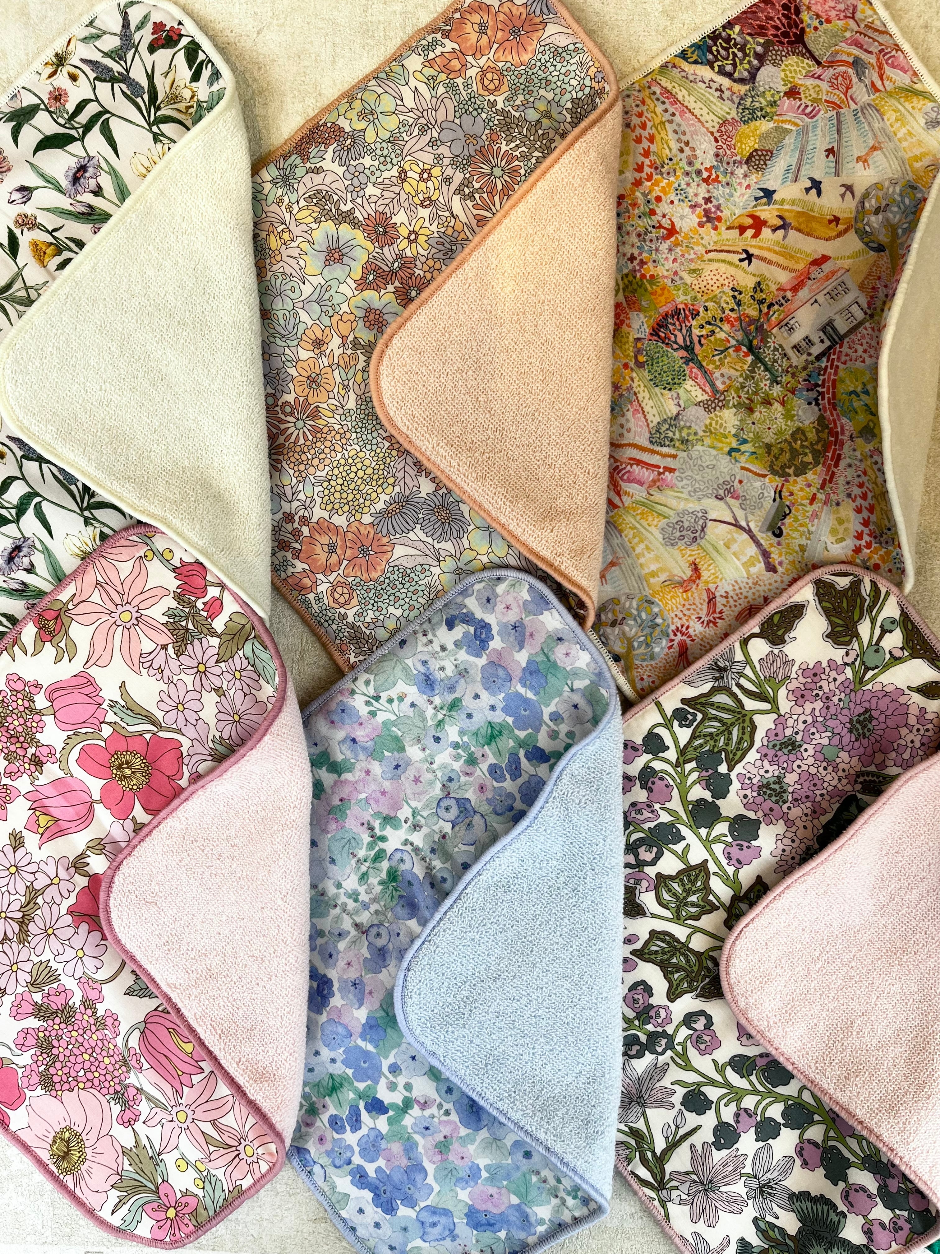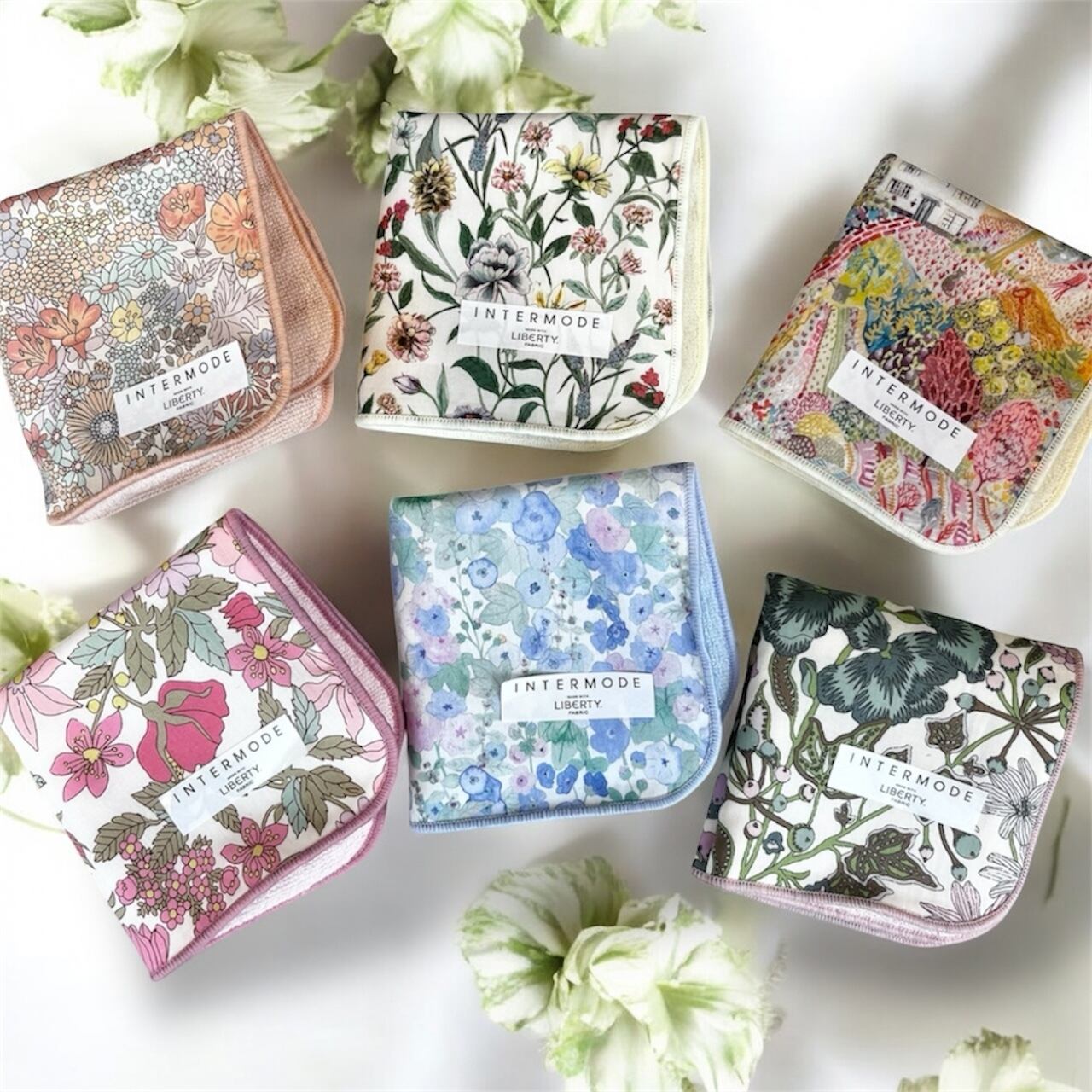 リバティの花柄生地とタオルを合わせた可愛いハンカチ。表面が人気の柄の生地、裏面がパイルになった20cmのミニタオル。ポケットやカバンの中で邪魔にならないコンパクトなサイズ感です。