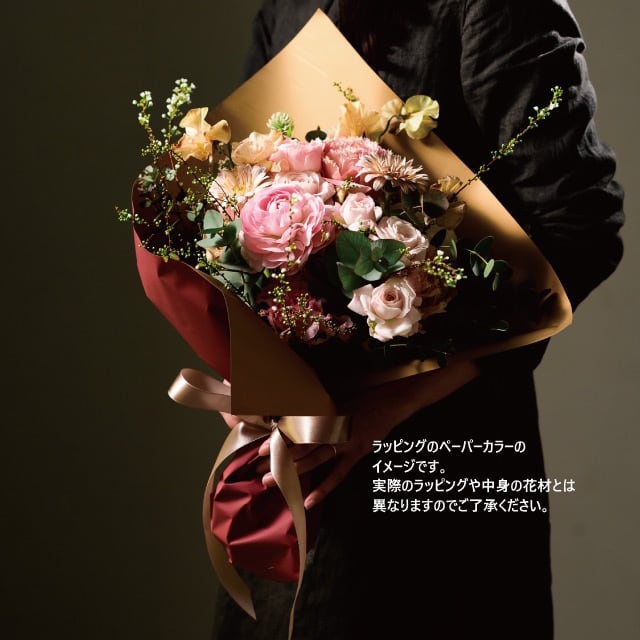 ラッピングペーパーと相性の良いお花を包ませていただきます。