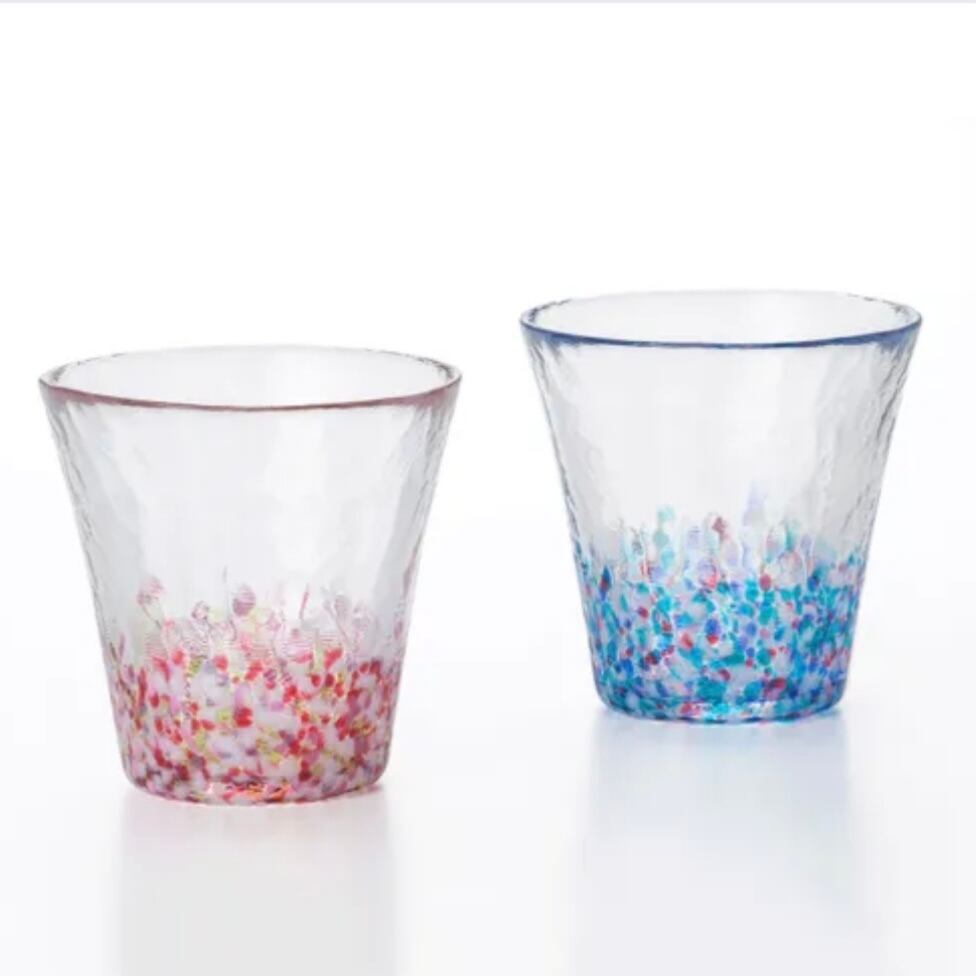情緒あふれる日本の美しい風景の色合いを多彩な色粒をちりばめて表現されたロックグラス。